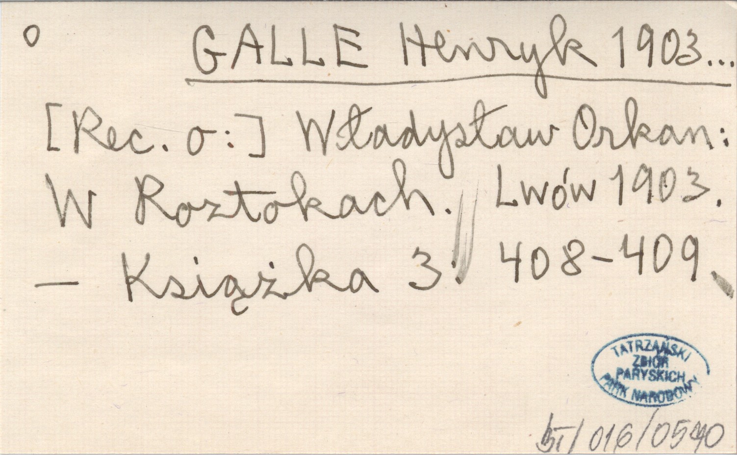 GALLE Henryk 1903... Władysław Orkan: W Roztokach. Lwów 1903.