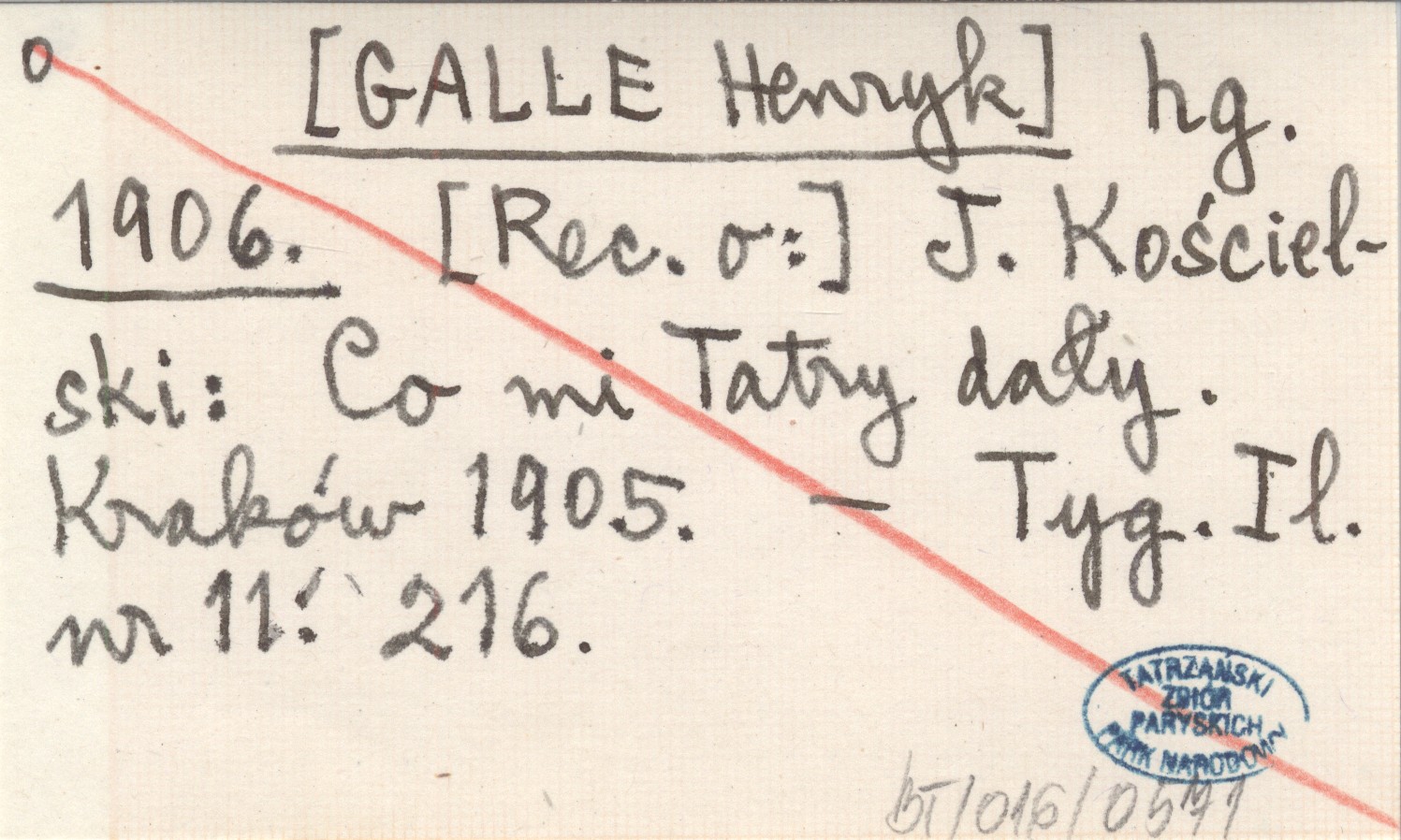 hg. [GALLE Henryk] 1906 J. Kościelski: Co mi Tatry dały. Kraków 1905.