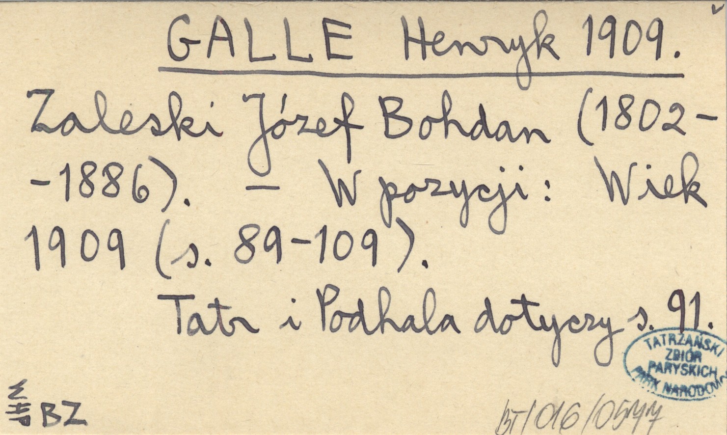 GALLE Henryk 1909 Zaleski Józef Bohdan (1802-1886).