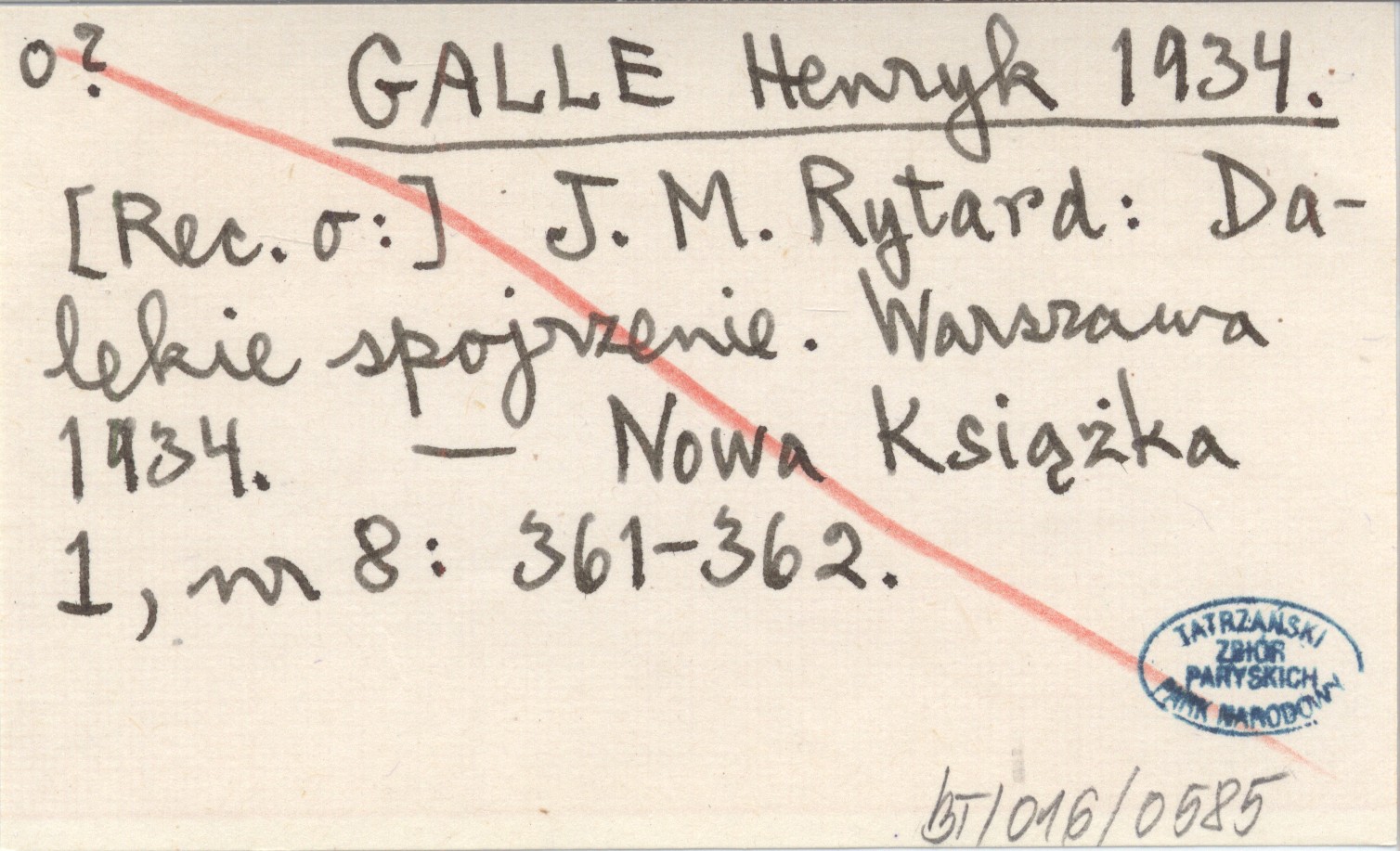 GALLE Henryk 1934 J. M. Rytard: Dalekie spojrzenie. Warszawa 1934.