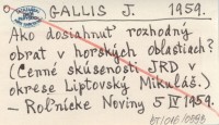 GALLIS J. 1959 Ako dosiahnu» rozhodný obrat v horských oblastiach? (Cenné skúsenosti JRD v okrese Liptovský Mikulá¹.).
