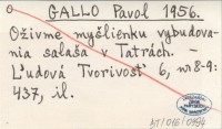 GALLO Pavol 1956 O¾ivme my¹lienku vybudovania sala¹a v Tatrách.