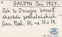 GAŁDYN Jan 1927... Jak to Dunajec bronił skarbów podhalańskich.