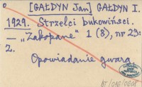 GAŁDYN I. [GAŁDYN Jan] 1929 Strzelci bukowińsci.