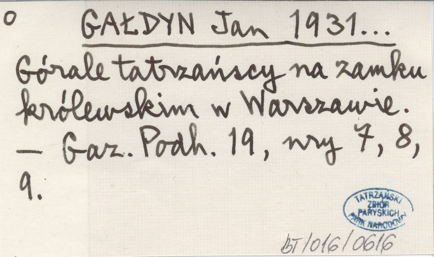 Projekt Digitalizacja fiszek z Bibliografią Tatr i Podtatrza Witolda Henryka Paryskiego jest finansowany ze środków Ministra Kultury i Dziedzictwa Narodowego oraz Tatrzańskiego Parku Narodowego.
