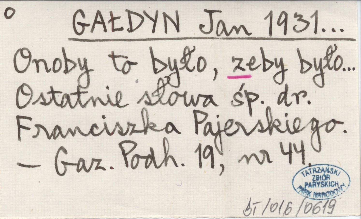 GAŁDYN Jan 1931... Onoby to było, zeby było... Ostatnie słowa śp. dr. Franciszka Pajerskiego.