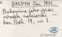 GAŁDYN Jan 1931... Bukowina jako spiski ośrodek narciarski.