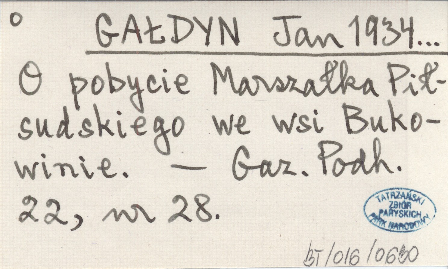 GAŁDYN Jan 1934... O pobycie Marszałka Piłsudskiego we wsi Bukowinie.