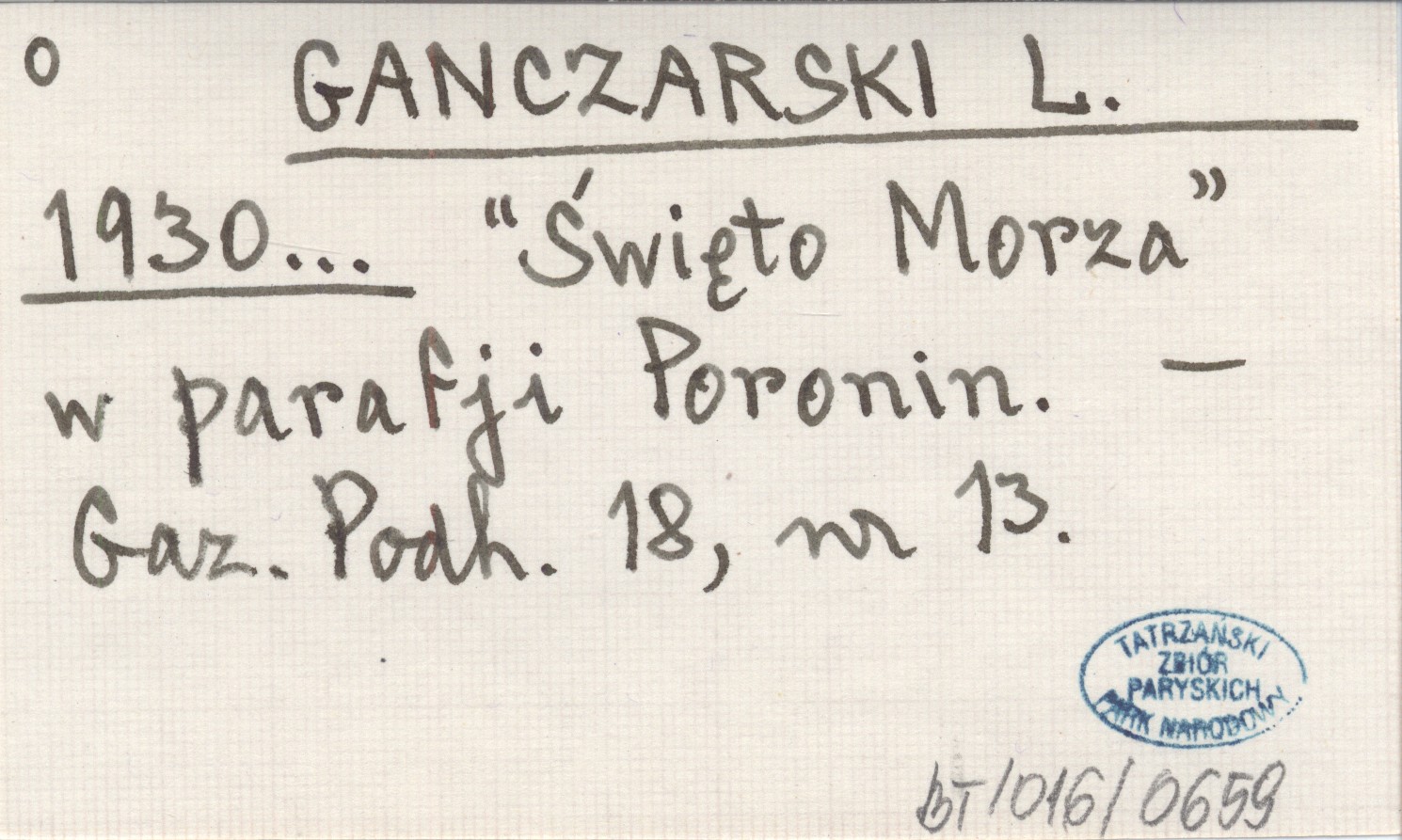 GANCZARSKI L. 1930... "Święto Morza" w parafji Poronin.