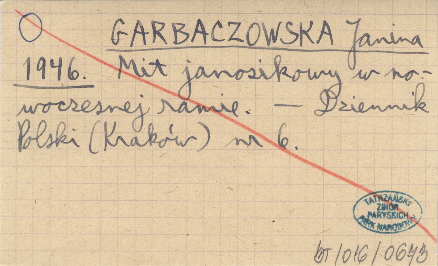 GARBACZOWSKA Janina 1946 Mit janosikowy w nowoczesnej ramie.
