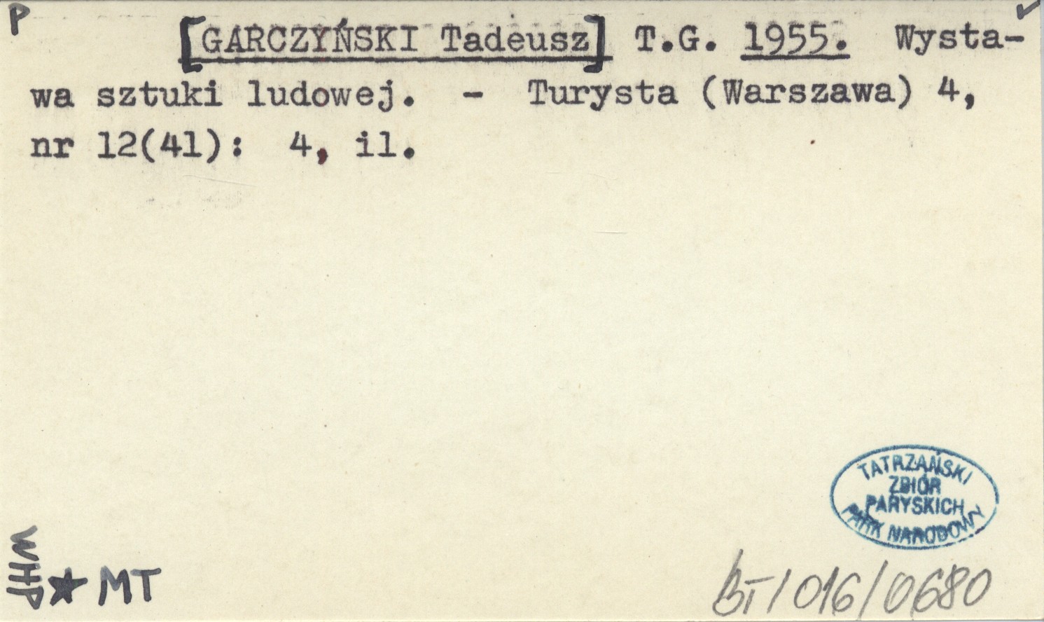 T. G. [GARCZYŃSKI Tadeusz] 1955 Wystawa sztuki ludowej.