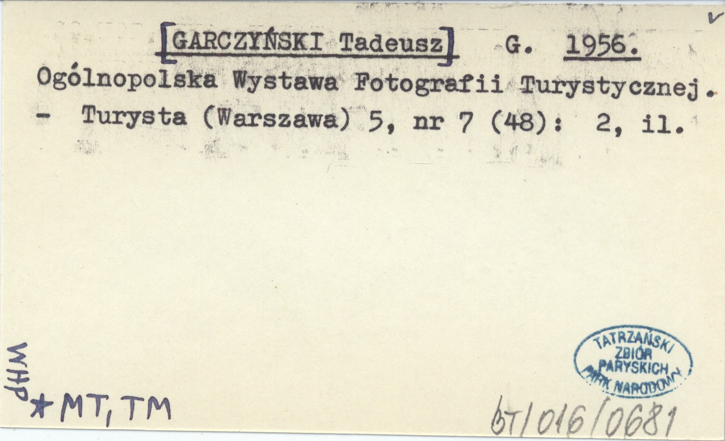 G. [GARCZYŃSKI Tadeusz] 1956 Ogólnopolska Wystawa Fotografii Turystycznej.