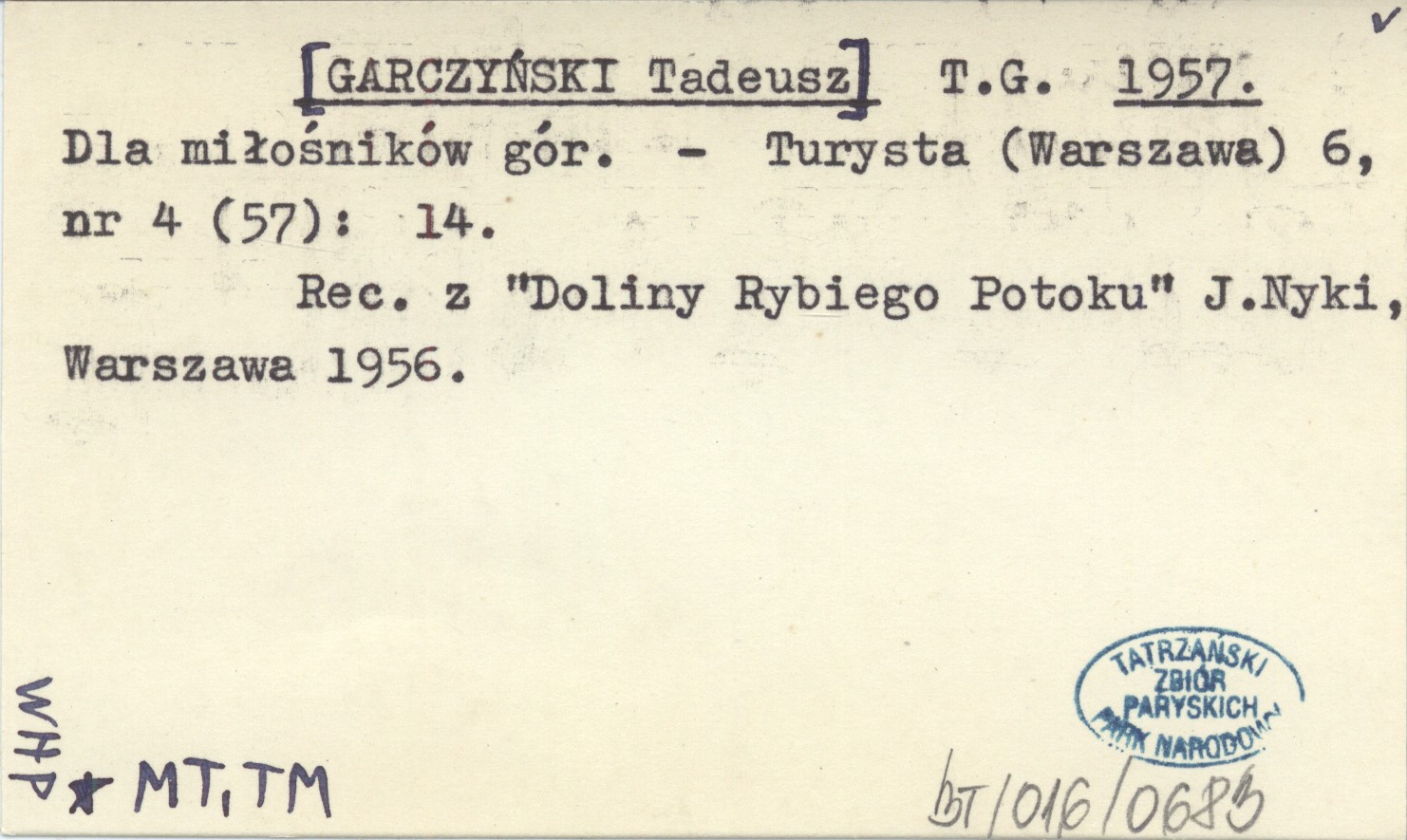 Turysta (Warszawa) , 6, nr 4 (57): 14. REC: NYKI J. z "Doliny Rybiego Potoku", Warszawa 1956