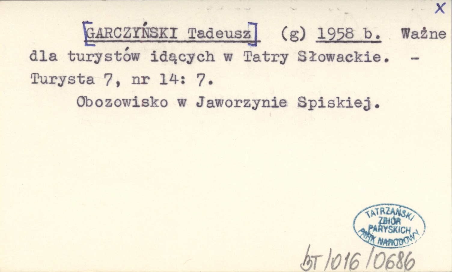(g) [GARCZYŃSKI Tadeusz] 1958 b Ważne dla turystów idących w Tatry Słowackie.