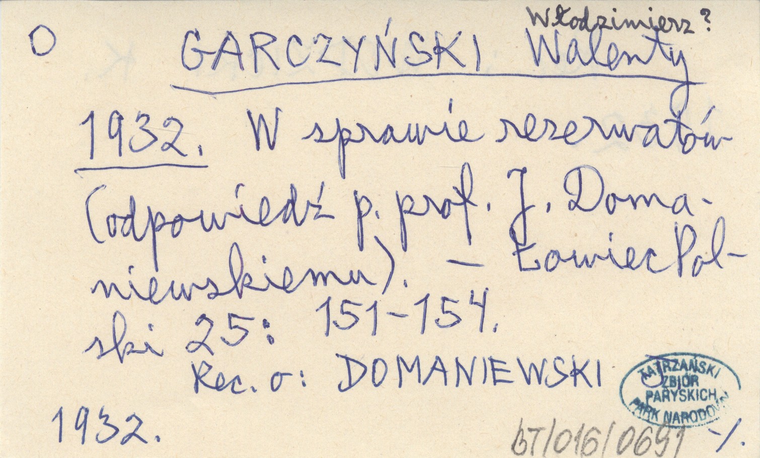 GARCZYŃSKI Walenty 1932 W sprawie rezerwatów (odpowiedź p. prof. J. Domaniewskiemu).