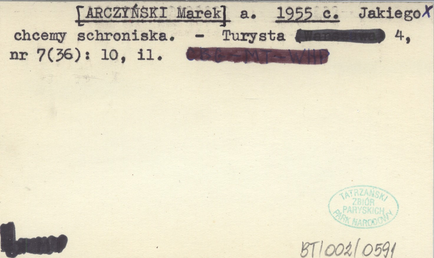 a. [ARCZYŃSKI Marek] 1955 c Jakiego chcemy schroniska.