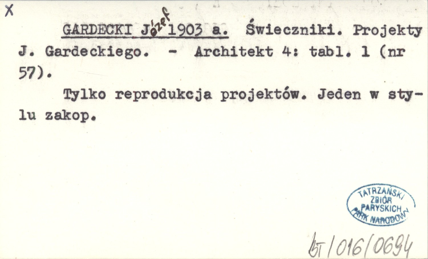 GARDECKI Józef 1903 a Świeczniki. Projekty J. Gardeckiego.
