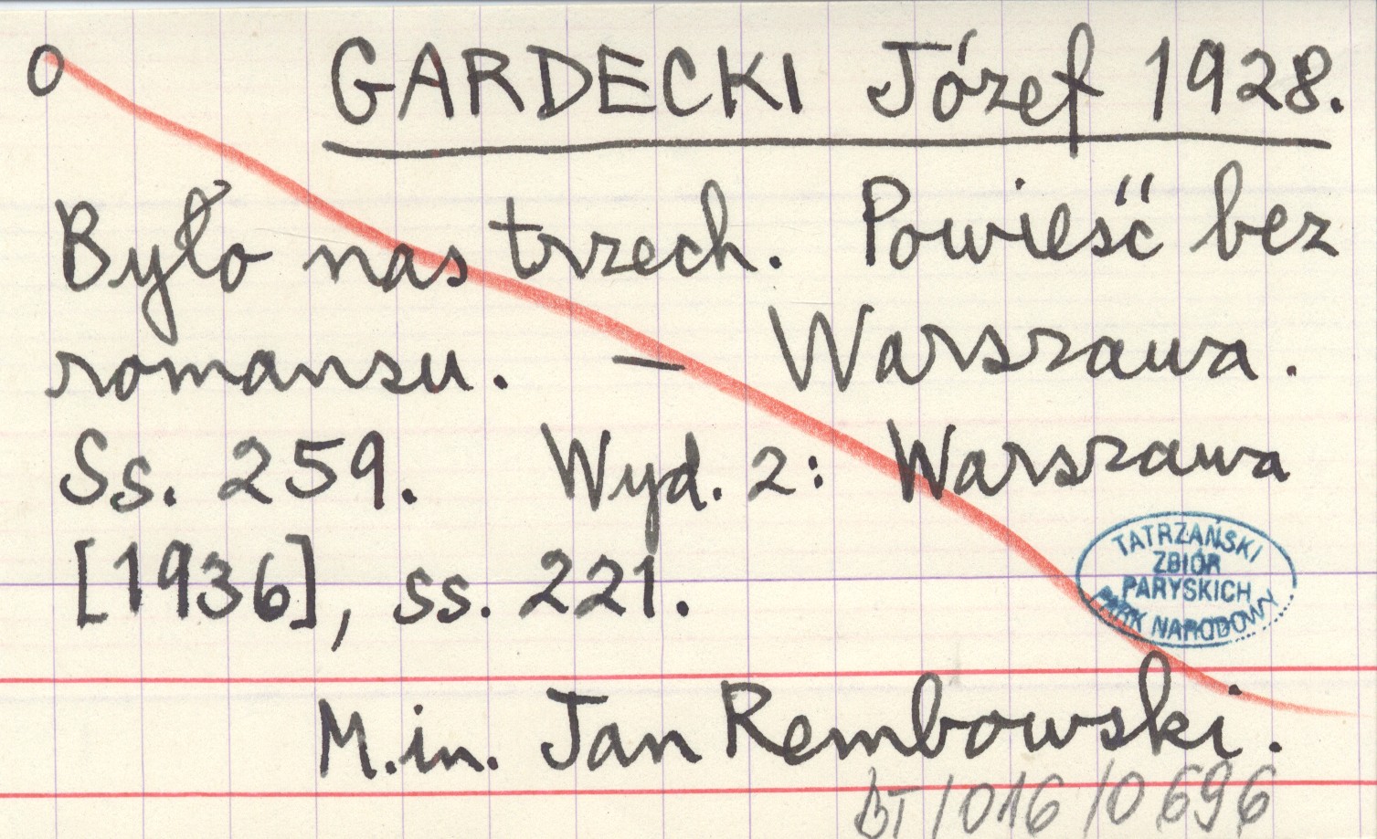 GARDECKI Józef 1928 Było nas trzech. Powieść bez romansu.