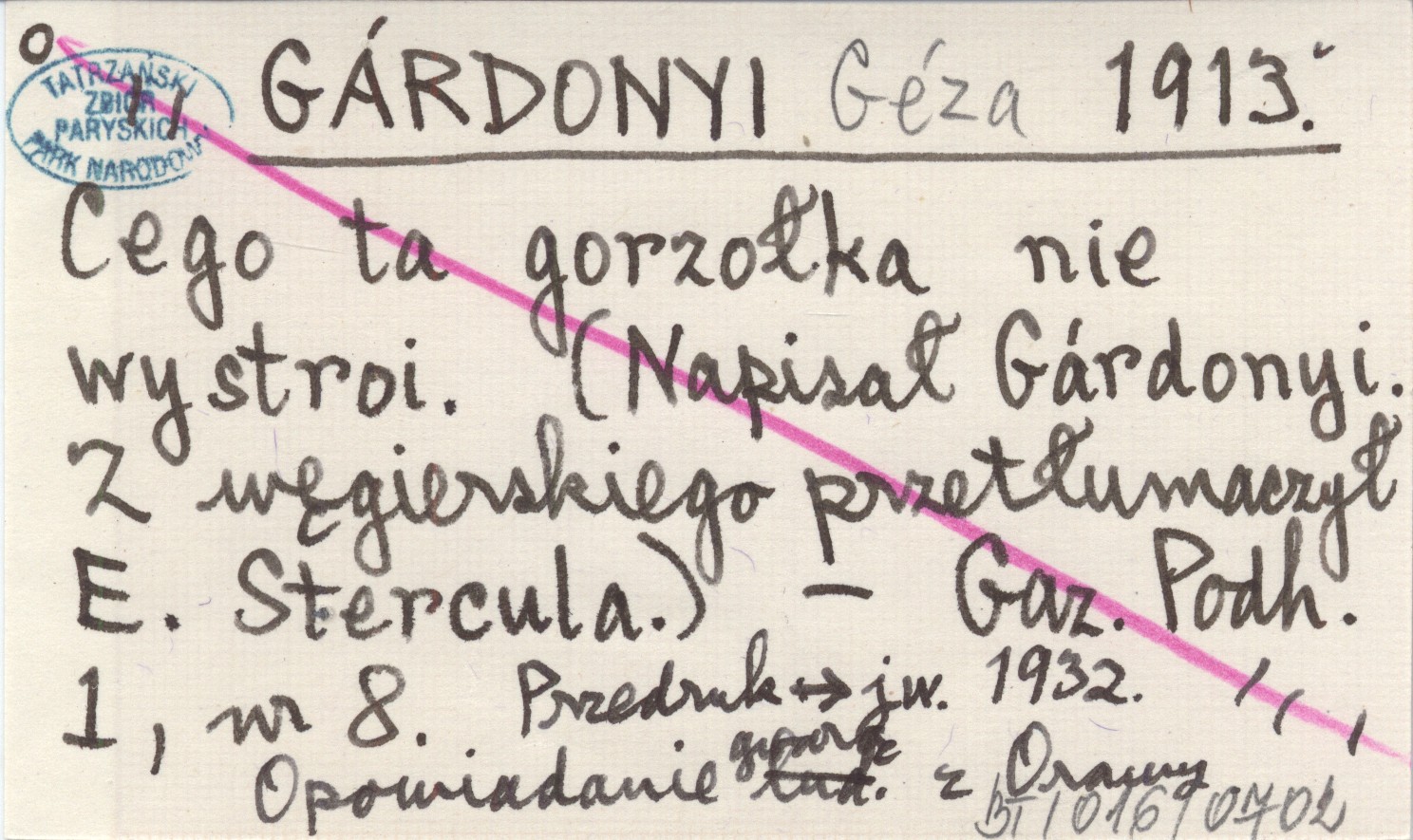 GÁRDONYI Géza 1913 Cego ta gorzołka nie wystroi. (Napisał Gárdonyi. Z węgierskiego przetłumaczył E. Stercula.).