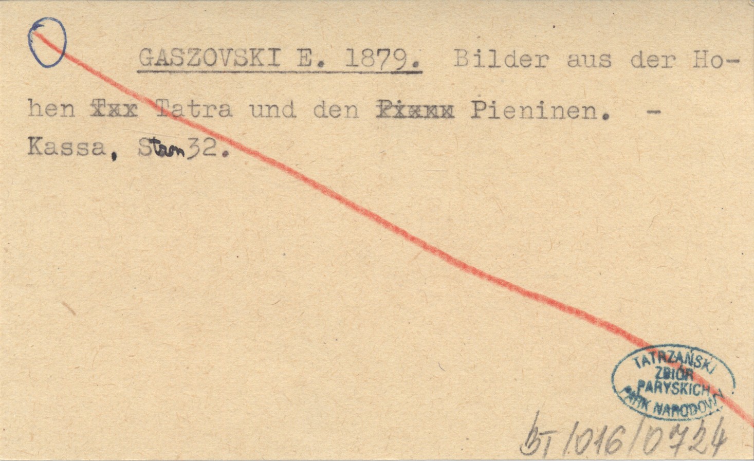GASZOVSKI E. 1879 Bilder aus der Hohen Tatra und den Pieninen.