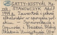 GATTY-KOSTYÁL Marek STAWOWCZYK, Adolf. ; 1949 a Zawartość i jakość alkaloidów w sporyszu polskim.