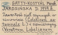 GATTY-KOSTYÁL Marek JAROSIŃSKA, D. ; 1949 c Zawartość ciał czynnych w zimowicie (Colchicum autumnale L.) i ciemierzycy (Veratrum Lobelianum Bernh.) rosnących w Polsce.