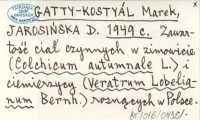 GATTY-KOSTYÁL Marek JAROSIŃSKA, D. ; 1949 b Zawartość ciał czynnych w zimowicie (Colchicum autumnale L.) i ciemierzycy (Veratrum Lobelianum Bernh.) rosnących w Polsce.
