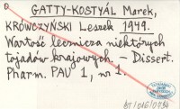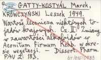 GATTY-KOSTYÁL Marek KRÓWCZYŃSKI, Leszek. ; 1949 Wartość lecznicza niektórych tojadów krajowych.