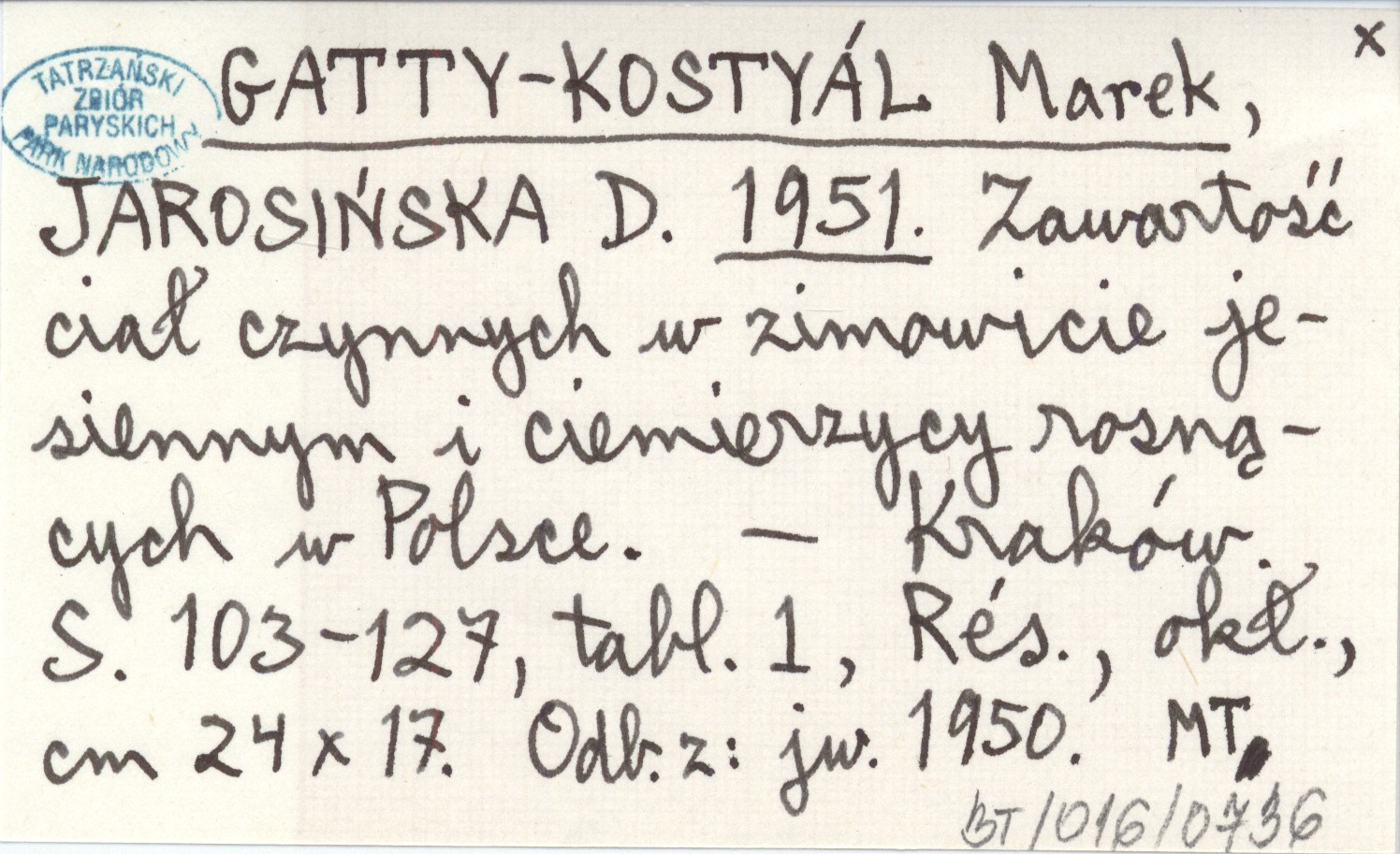 GATTY-KOSTYÁL Marek JAROSIŃSKA, D. ; 1951 Zawartość ciał czynnych w zimowicie jesiennym i ciemierzycy rosnących w Polsce.