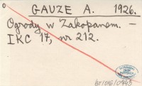 GAUZE A. 1926 Ogrody w Zakopanem.