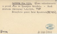 GAVENDA Ota 1954 Týden odhodlanosti a pevné vůle ve Vysokých Tatrách.