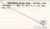 GAWALEWICZ Marian 1888 Notatki z Zakopanego.
