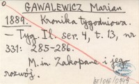 M. G. [GAWALEWICZ Marian] 1889 Kronika tygodniowa.