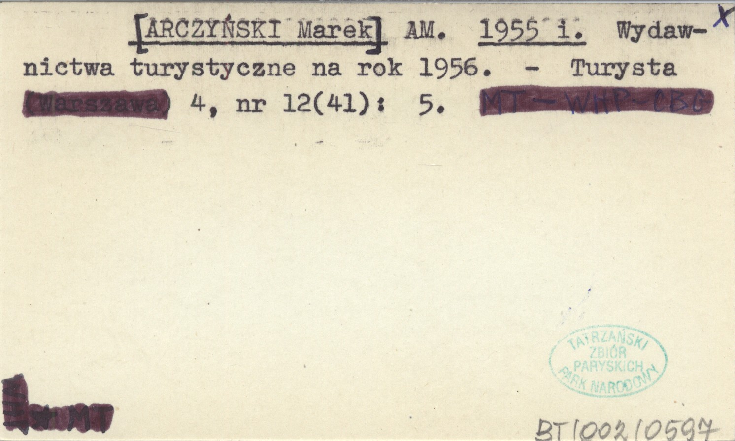 AM. [ARCZYŃSKI Marek] 1955 i Wydawnictwa turystyczne na rok 1956.