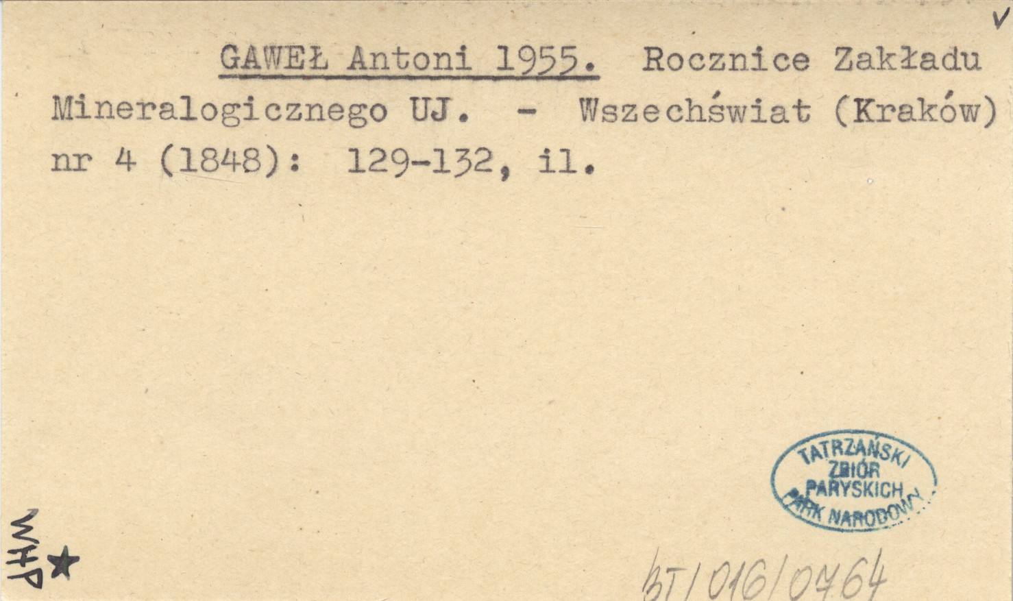 GAWEŁ Antoni 1955 Rocznice Zakładu Mineralogicznego UJ.