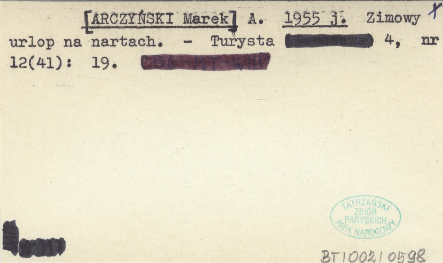 A. [ARCZYŃSKI Marek] 1955 j Zimowy urlop na nartach.
