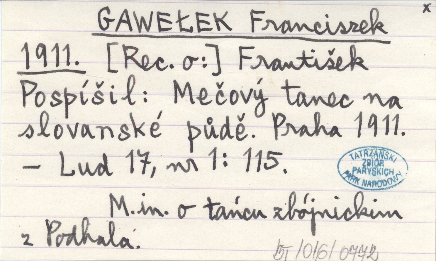 GAWEŁEK Franciszek 1911 František Pospíšil: Mečový tanec na slovanské půdě. Praha 1911.