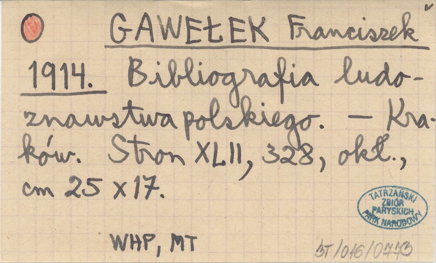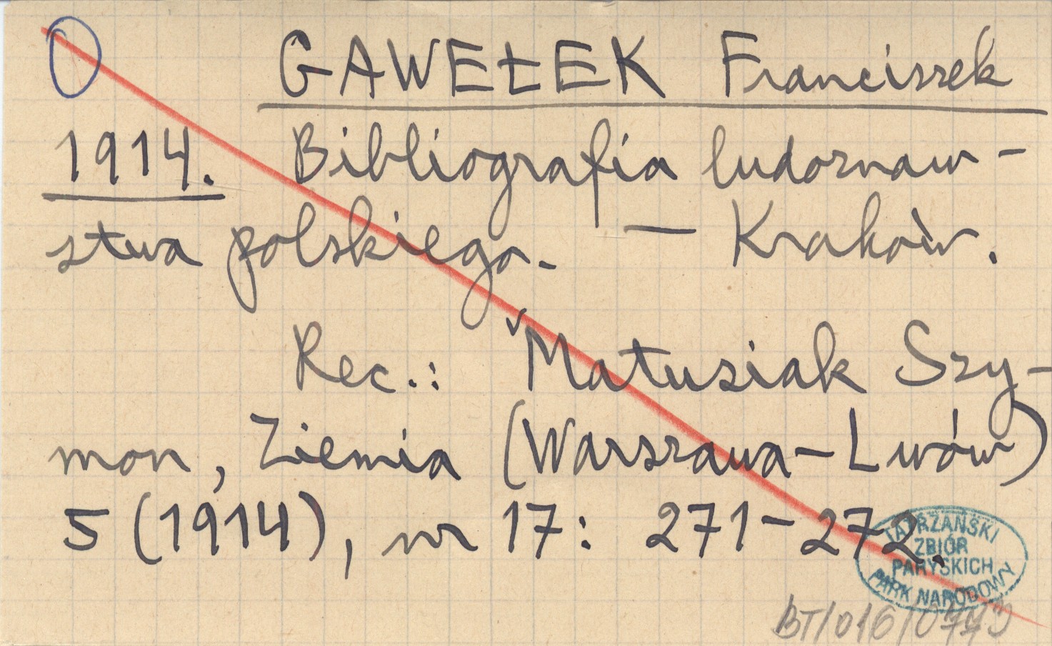 GAWEŁEK Franciszek 1914 Bibliografia ludoznawstwa polskiego.