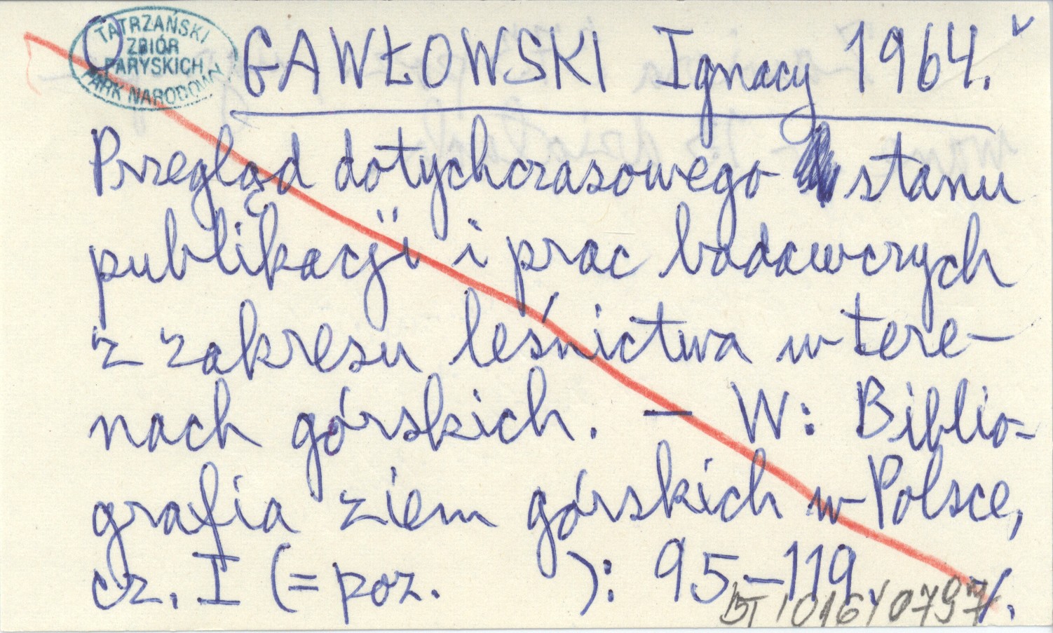 GAWŁOWSKI Ignacy 1964 Przegląd dotychczasowego stanu publikacji i prac badawczych z zakresu leśnictwa w terenach górskich.
