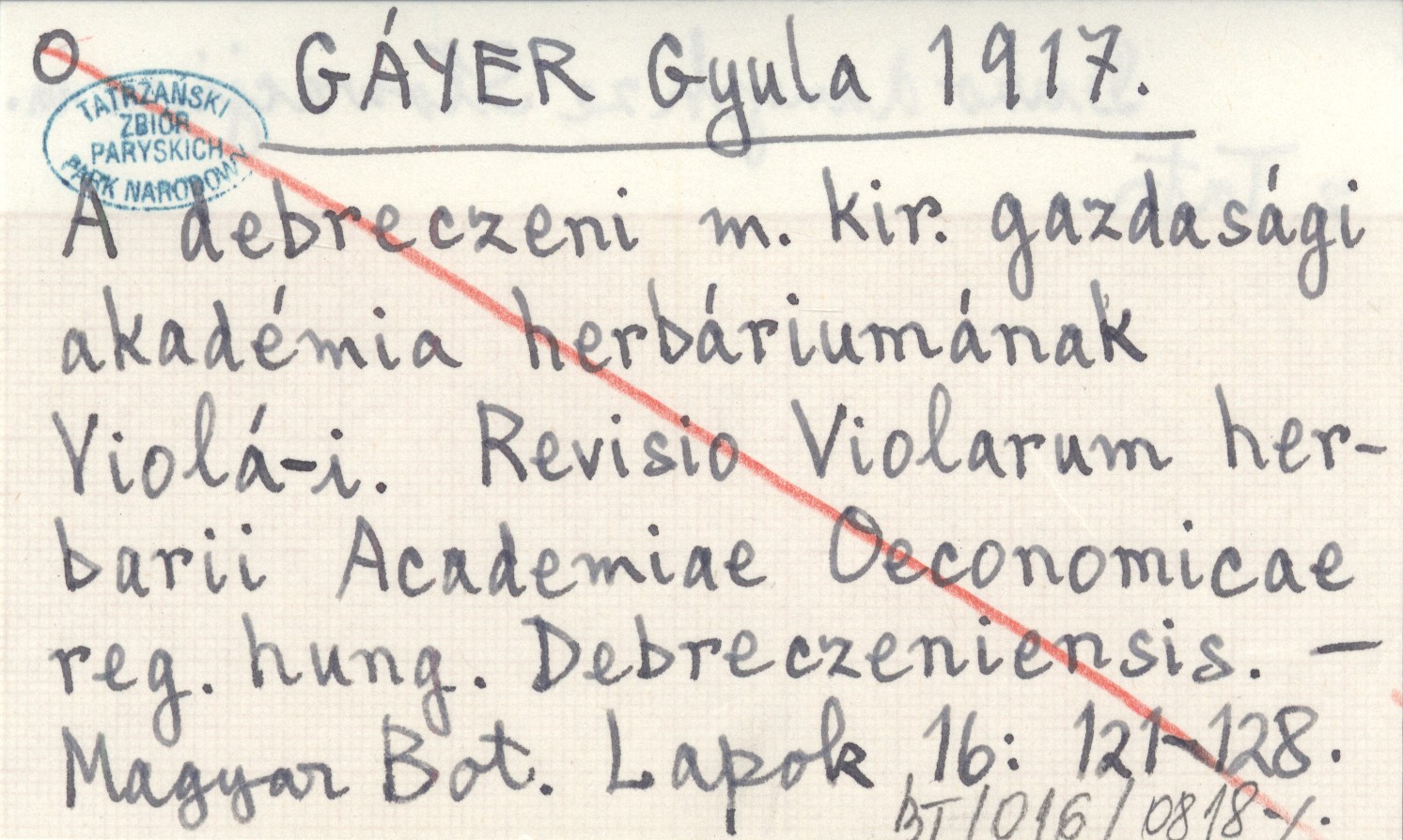 GÁYER Gyula 1917 A debreczeni m. kir. gazdasági akadémia herbáriumának Violá-i. Revisio Violarum herbarii Academiae Oeconomicae reg. hung. Debreczeniensis.