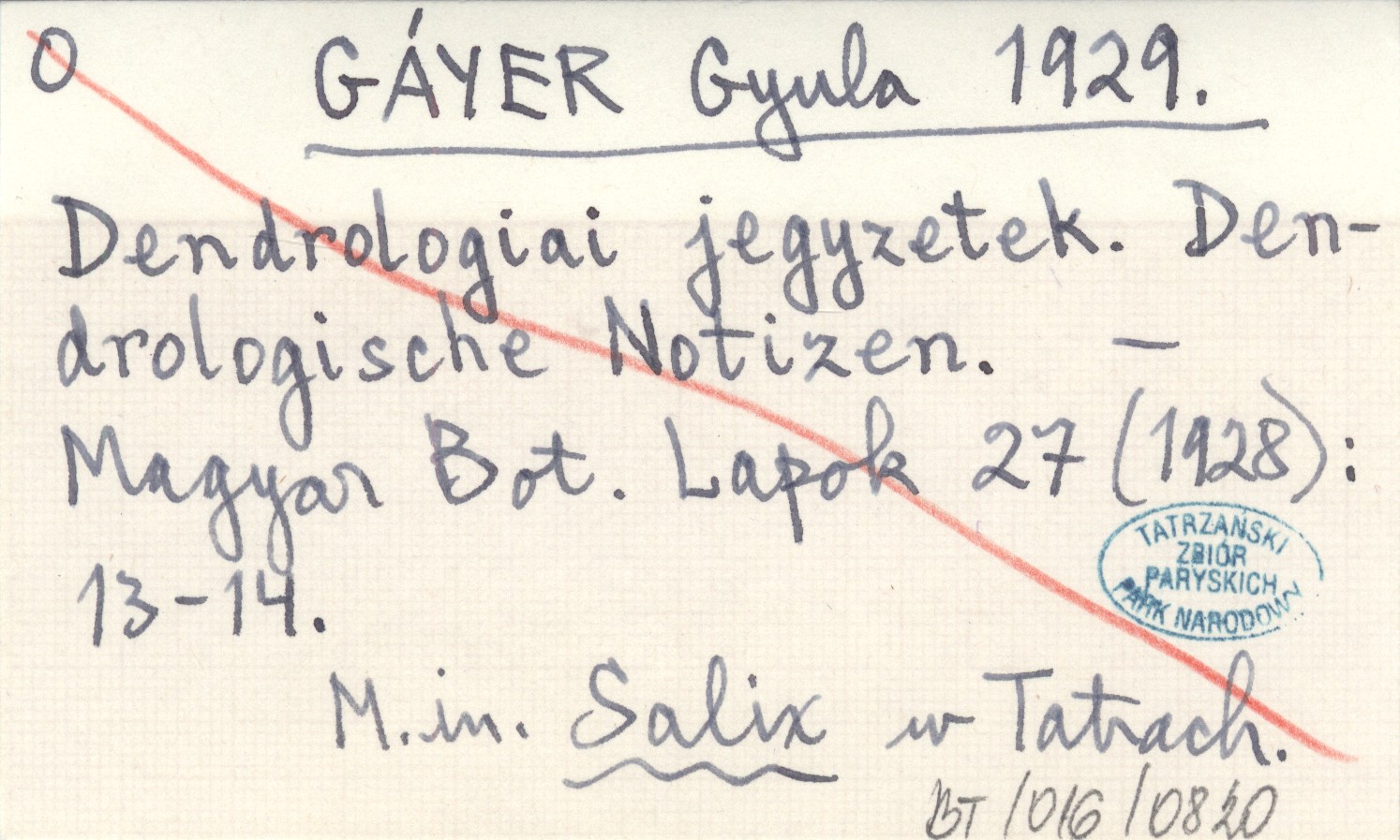 GÁYER Gyula 1929 Dendrologiai jegyzetek. Dendrologische Notizen.
