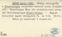 GÁYER Gyula 1908 Néhány megjegyzés a Plagiostigma csoportba tartozó hazai ibolyákról. Bemerkungen über die einheimischen Arten der Veilchengruppe Plagiostigma.