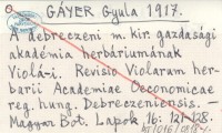 GÁYER Gyula 1917 A debreczeni m. kir. gazdasági akadémia herbáriumának Violá-i. Revisio Violarum herbarii Academiae Oeconomicae reg. hung. Debreczeniensis.