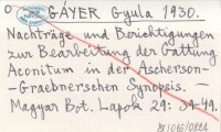 GÁYER Gyula 1930 Nachträge und Berichtigungen zur Bearbeitung der Gattung Aconitum in der Ascherson-Graebnerschen Synopsis.