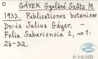 GÁYER Gyuláné Szűts M. 1933 Publicationes botanicae Dr.-is Julius Gáyer.