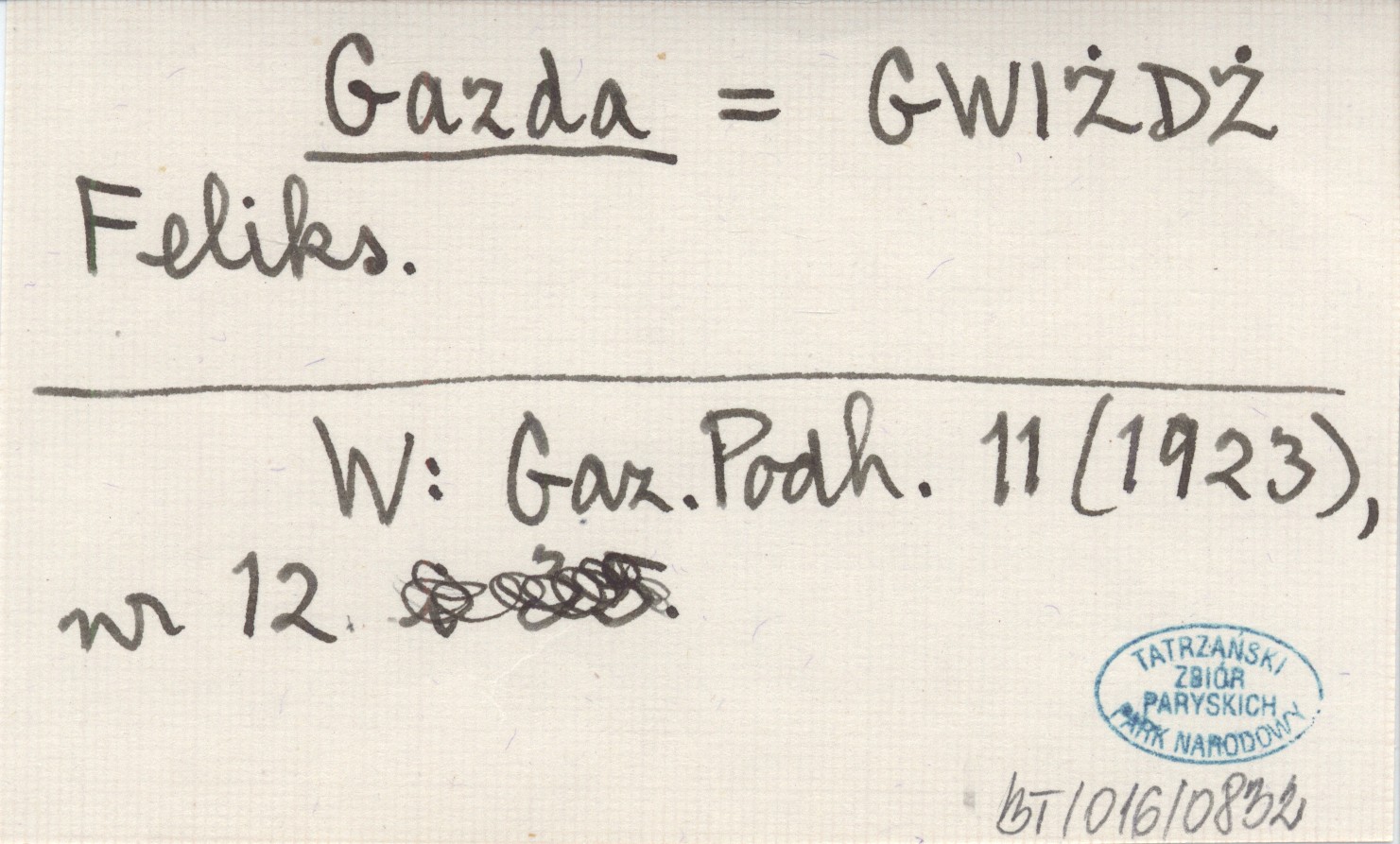 Gazda GWIŻDŻ Feliks Gazeta Podhalańska 11 (1923), nr 12.