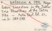 GAŹDZICKI A. 1971 Megalodon Limestone in the Subtatric Rhaethian of the Tatra Mts.