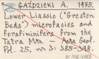 GAŹDZICKI A. 1975 Lower Liassic ("Gresten Beds") microfacies and forafiminifers from the Tatra Mts.