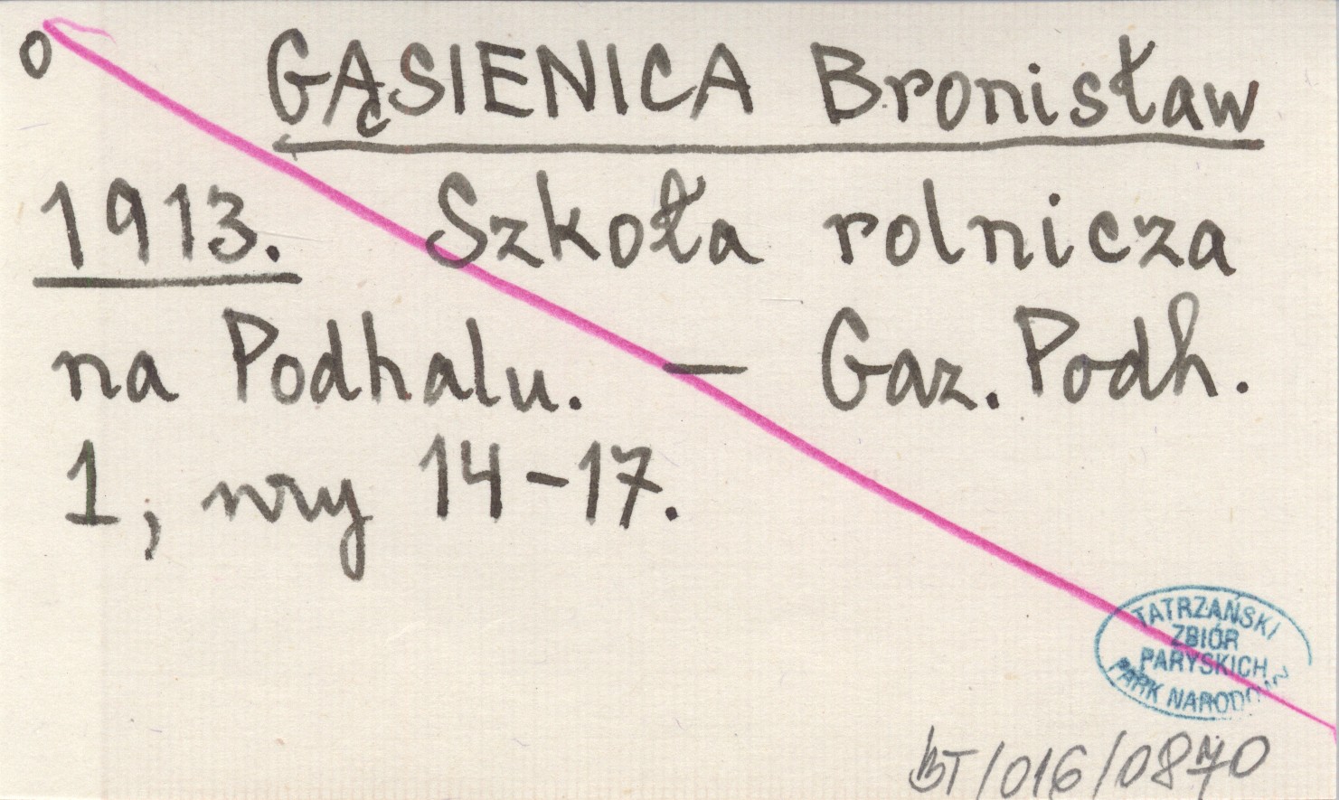 GĄSIENICA Bronisław 1913 Szkoła rolnicza na Podhalu.