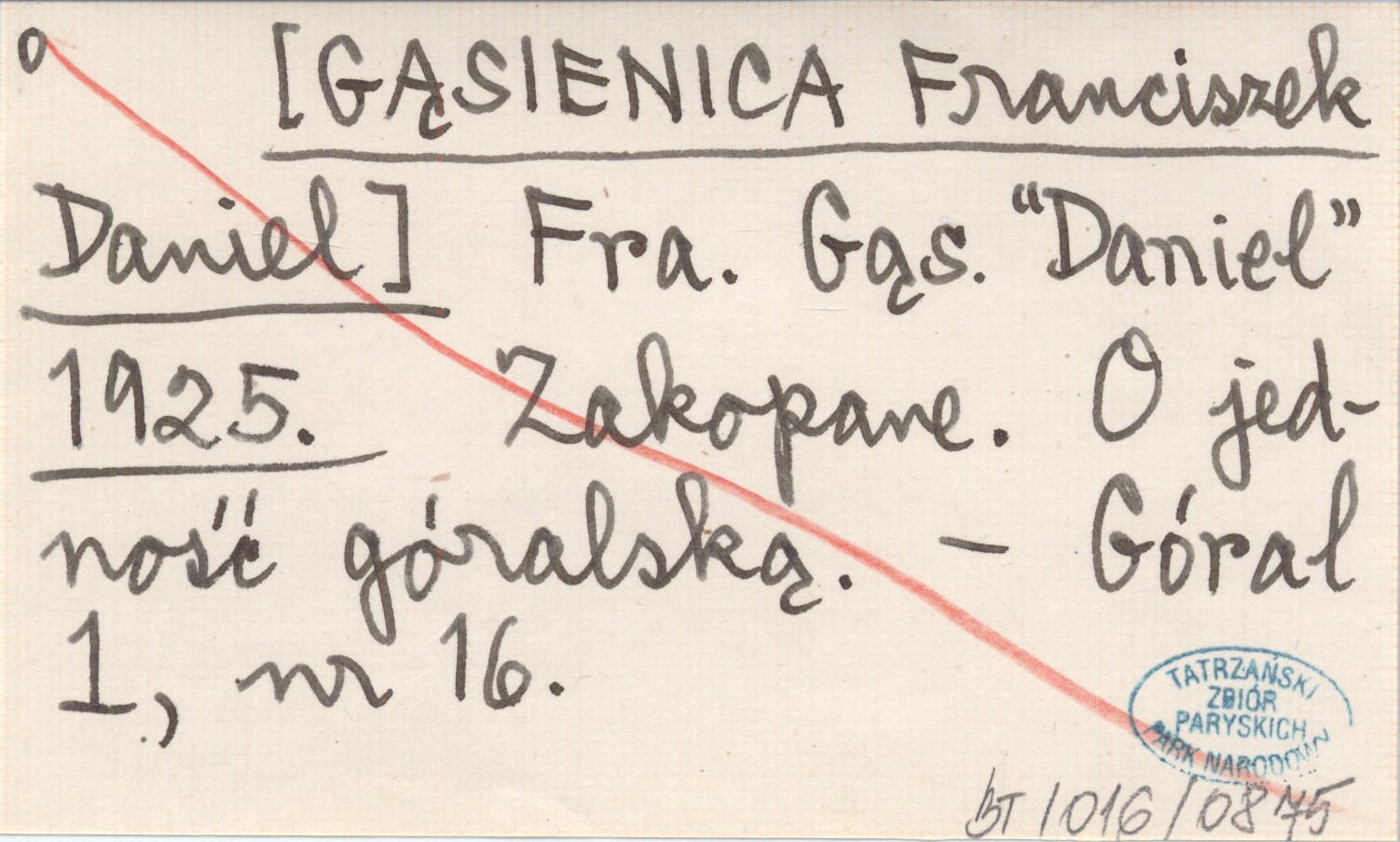 Fra. Gąs. "Daniel" [GĄSIENICA Franciszek Daniel] 1925 Zakopane. O jedność góralską.